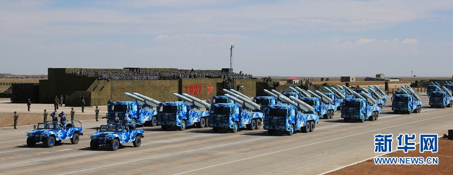 7月30日,慶祝中國人民解放軍建軍90周年閱兵在位于內蒙古的朱日和訓練基地舉行。中共中央總書記、國家主席、中央軍委主席習近平檢閱部隊并發(fā)表重要講話。這是海軍導彈第1方隊。新華社記者 查春明 攝