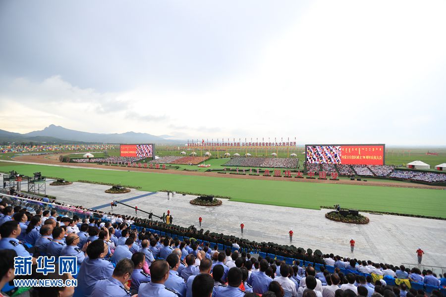 8月8日,內(nèi)蒙古自治區(qū)成立70周年慶祝大會(huì)在呼和塔拉內(nèi)蒙古少數(shù)民族群眾文化體育運(yùn)動(dòng)中心舉行。圖為大會(huì)現(xiàn)場。新華網(wǎng)記者 陳杰 攝