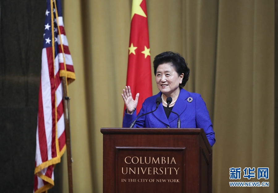 當?shù)貢r間9月26日,國務(wù)院副總理劉延東在紐約哥倫比亞大學出席中美大學校長與智庫論壇并發(fā)表主旨演講。 新華社記者 王迎 攝