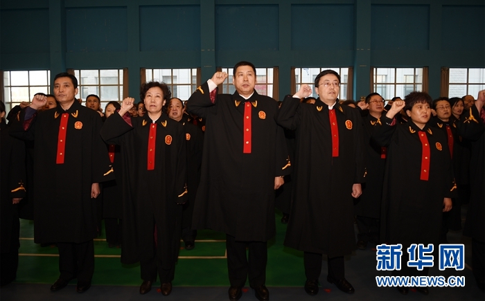 2017年1月10日,內(nèi)蒙古自治區(qū)首批156名入額法官在內(nèi)蒙古高級人民法院宣誓。司法責(zé)任制改革全面推開,12萬多名法官、9萬多名檢察官遴選入額,優(yōu)質(zhì)司法資源充實(shí)辦案一線。新華社記者 鄧華 攝