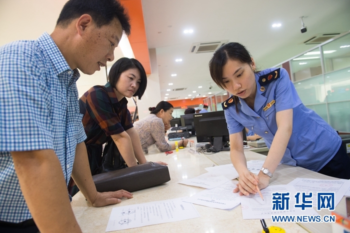 2017年8月17日,在浙江省寧波市奉化區(qū)行政服務(wù)中心,奉化一家公司在商事登記窗口辦理公司注冊手續(xù)。目前全國所有省市縣三級政府部門權(quán)責(zé)清單均已公布,明確政府機(jī)構(gòu)、職能、權(quán)限、程序,厘清權(quán)力邊界。新華社記者 翁忻旸 攝