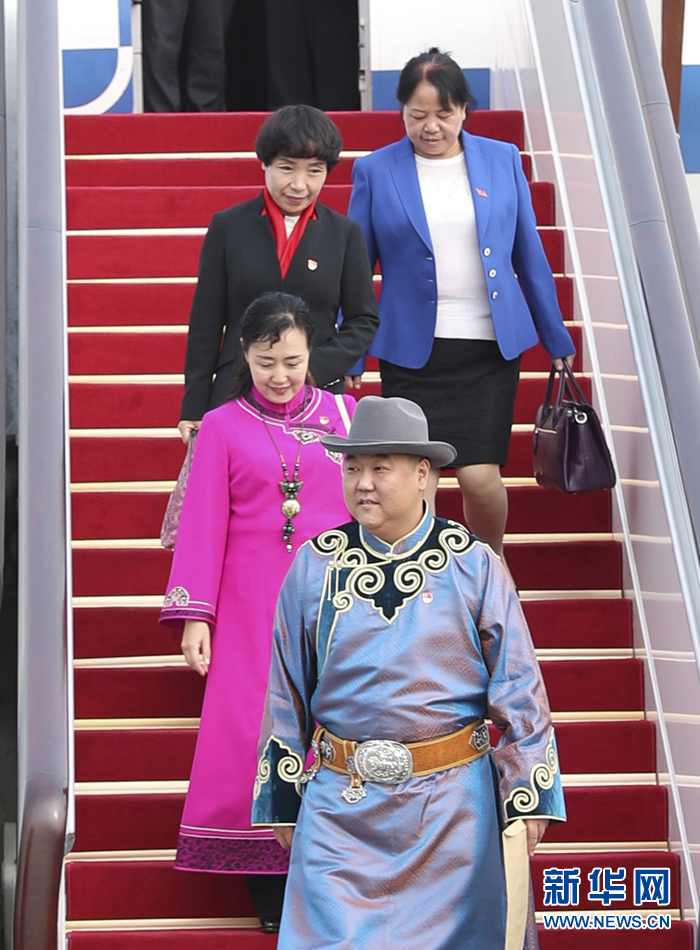 10月15日,來自內(nèi)蒙古自治區(qū)的黨的十九大代表乘飛機抵達首都國際機場。這是第一個抵京的京外代表團。 新華社記者 丁海濤 攝