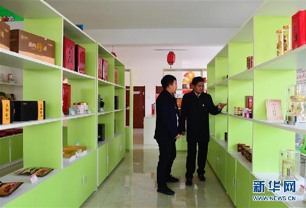 李華靚(右)向一名客商介紹馬場(chǎng)村農(nóng)民專業(yè)合作社產(chǎn)品(10月31日攝)。新華社記者林宏攝