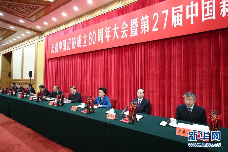 11月8日,慶祝中國記協(xié)成立80周年大會暨第27屆中國新聞獎頒獎報告會在北京舉行。國務院副總理劉延東在會上宣讀中共中央總書記、國家主席、中央軍委主席習近平的賀信。中共中央政治局委員、中宣部部長黃坤明出席大會并講話。新華社記者鞠鵬攝