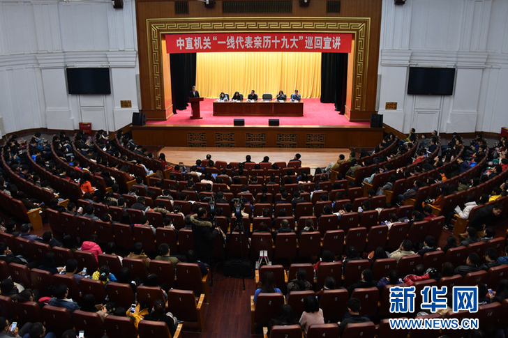 中直機關“一線代表親歷十九大”巡回宣講第三場報告會現(xiàn)場。新華社記者 徐速繪 攝