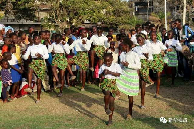 2016年4月30日,岡比亞學(xué)生團(tuán)體在首都班珠爾建城200周年慶?;顒?dòng)中表演舞蹈。新華社記者 王猛攝