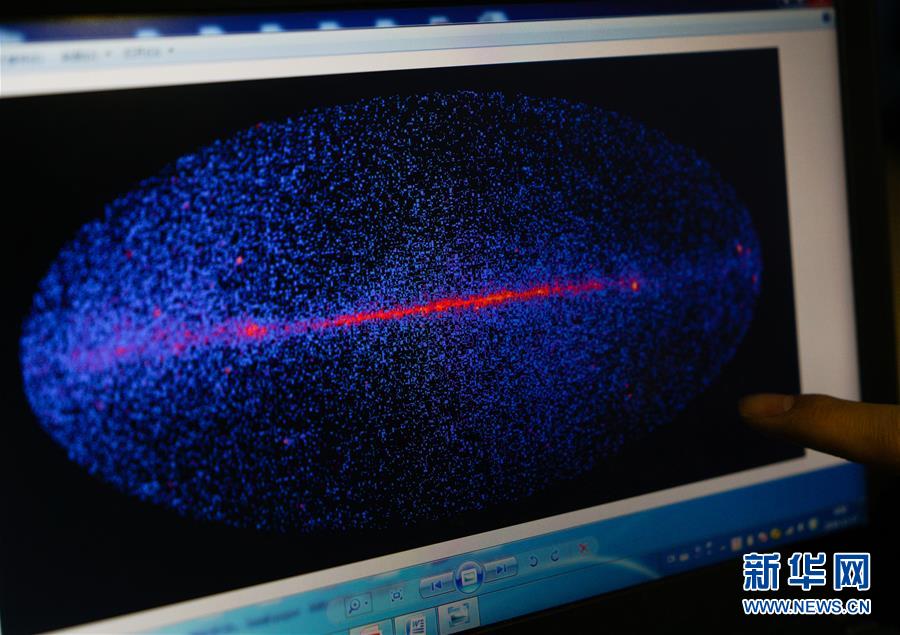 11月30日,國(guó)際權(quán)威學(xué)術(shù)期刊《自然》在線發(fā)布,暗物質(zhì)粒子探測(cè)衛(wèi)星“悟空”在太空中測(cè)量到電子宇宙射線的一處異常波動(dòng)。暗物質(zhì),一個(gè)人類追尋多年的宇宙魅影,被中國(guó)“悟空”發(fā)現(xiàn)了疑似蹤跡。(新華社記者李響攝)