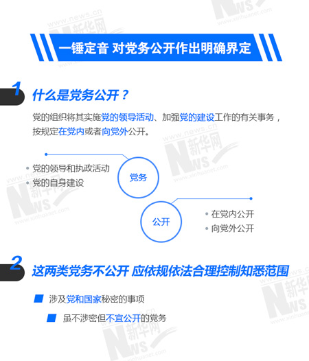 長(zhǎng)期以來,關(guān)于什么是黨務(wù)公開,理論上和實(shí)踐中有一些不同觀點(diǎn)?!稐l例》對(duì)此作了明確界定,即黨務(wù)公開是指黨的組織將其實(shí)施黨的領(lǐng)導(dǎo)活動(dòng)、加強(qiáng)黨的建設(shè)工作的有關(guān)事務(wù),按規(guī)定在黨內(nèi)或者向黨外公開。而且《條例》還規(guī)定了除涉及黨和國(guó)家秘密不得公開、依照有關(guān)規(guī)定不宜公開的事項(xiàng)外,一般應(yīng)當(dāng)公開。