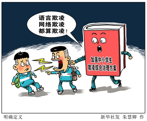 毆打、往身上澆開水、在網(wǎng)上傳播個人隱私……近年來,中小學(xué)生欺凌事件時有發(fā)生,行為手段層出不窮。為防治學(xué)生欺凌行為,教育、公安、民政、婦聯(lián)等11部門一齊向?qū)W生欺凌行為“亮劍”,共同印發(fā)了《加強中小學(xué)生欺凌綜合治理方案》。而這是否真的能讓我們的孩子免于欺凌的恐懼?