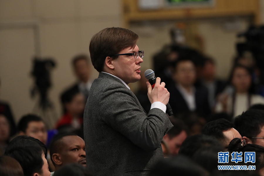 十二屆全國(guó)人大五次會(huì)議新聞中心于3月8日(星期三)10時(shí)在梅地亞中心多功能廳舉行記者會(huì),邀請(qǐng)外交部部長(zhǎng)王毅就“中國(guó)的外交政策和對(duì)外關(guān)系”的相關(guān)問(wèn)題回答中外記者的提問(wèn)。圖為塔斯社記者提問(wèn)。新華網(wǎng)/中國(guó)政府網(wǎng)?翟子赫 攝?