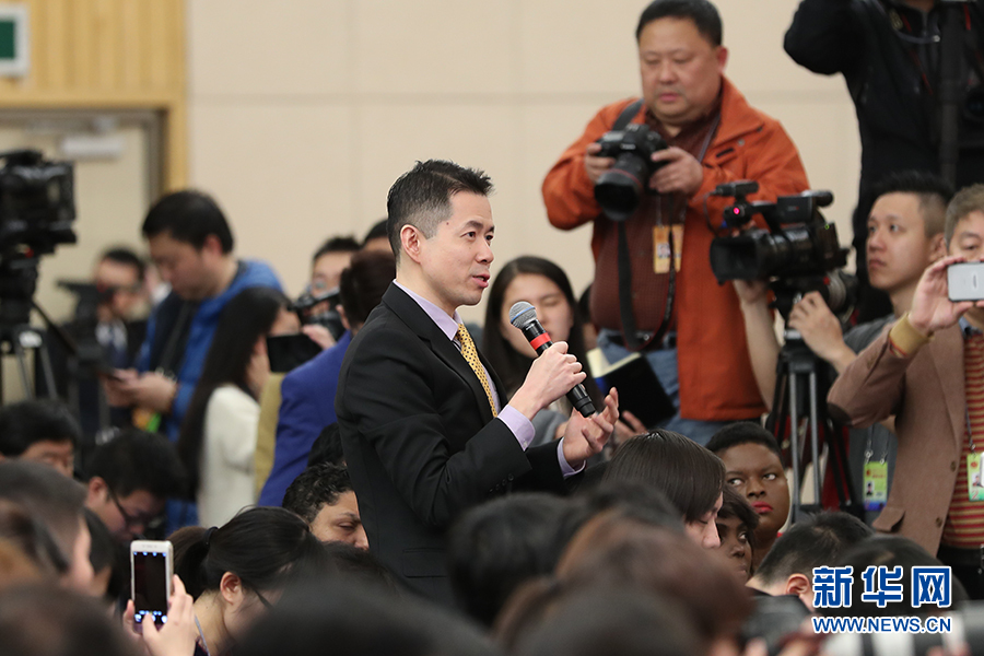 十二屆全國人大五次會議新聞中心于3月8日(星期三)10時在梅地亞中心多功能廳舉行記者會,邀請外交部部長王毅就“中國的外交政策和對外關系”的相關問題回答中外記者的提問。圖為美國有線電視新聞網記者提問。新華網/中國政府網?翟子赫 攝