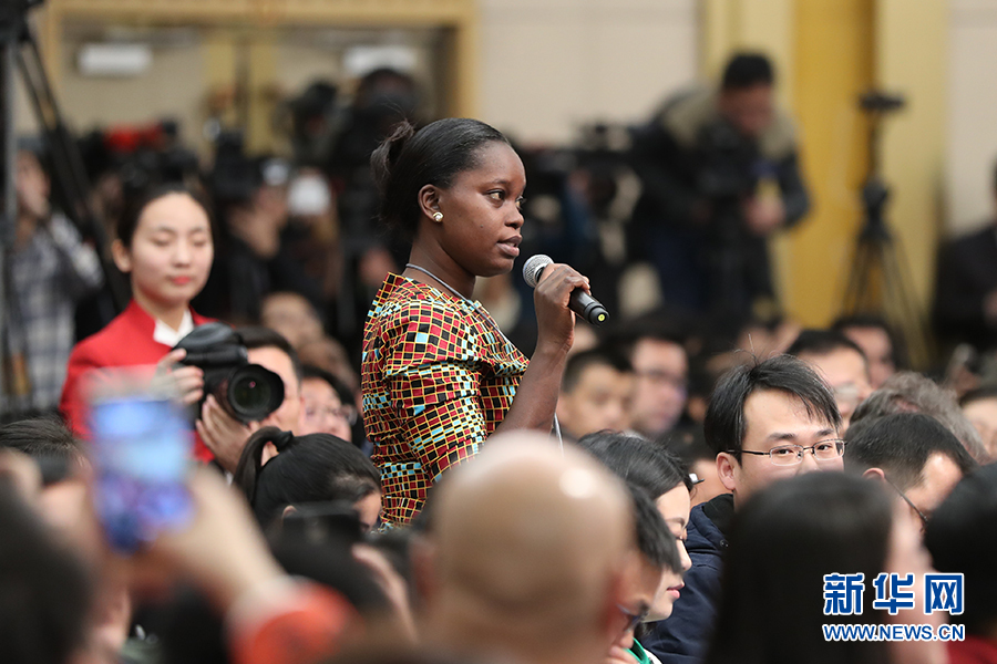 十二屆全國人大五次會議新聞中心于3月8日(星期三)10時(shí)在梅地亞中心多功能廳舉行記者會,邀請外交部部長王毅就“中國的外交政策和對外關(guān)系”的相關(guān)問題回答中外記者的提問。圖為坦桑尼亞標(biāo)準(zhǔn)報(bào)業(yè)集團(tuán)記者提問。新華網(wǎng)/中國政府網(wǎng) 翟子赫 攝