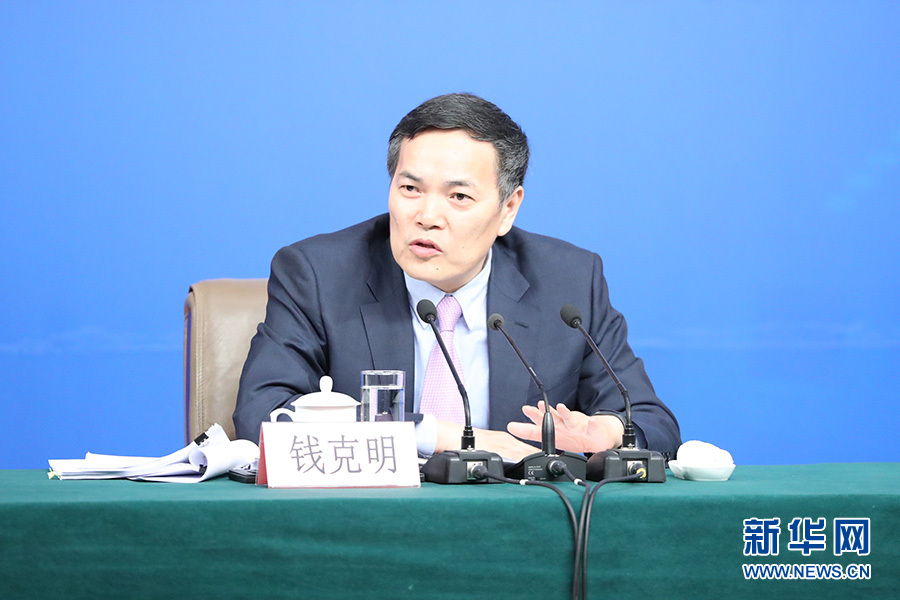 3月11日,十二屆全國(guó)人大五次會(huì)議新聞中心舉行記者會(huì),主題是“改革開(kāi)放調(diào)結(jié)構(gòu) 創(chuàng)新驅(qū)動(dòng)促發(fā)展”,商務(wù)部部長(zhǎng)鐘山、副部長(zhǎng)王受文、副部長(zhǎng)錢(qián)克明出席并回答中外記者的提問(wèn)。圖為商務(wù)部副部長(zhǎng)錢(qián)克明回答記者提問(wèn)。 新華網(wǎng)/中國(guó)政府網(wǎng) 傅義洲 攝