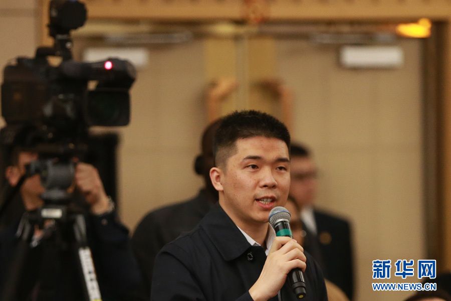 3月11日,十二屆全國人大五次會議新聞中心舉行記者會,主題是“改革開放調(diào)結(jié)構(gòu) 創(chuàng)新驅(qū)動促發(fā)展”,商務(wù)部部長鐘山、副部長王受文、副部長錢克明出席并回答中外記者的提問。圖為中國日報記者提問。 新華網(wǎng)/中國政府網(wǎng) 王健 攝