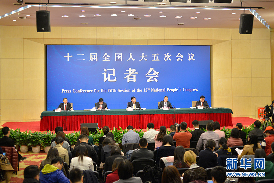 3月11日,十二屆全國人大五次會議新聞中心舉行記者會,邀請工業(yè)和信息化部部長苗圩、副部長辛國斌和總工程師、新聞發(fā)言人張峰就“推進實施‘中國制造2025’”的相關問題回答中外記者的提問。圖為記者會現(xiàn)場。新華網(wǎng)/中國政府網(wǎng) 孫韜 攝