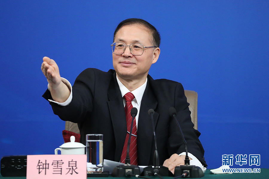 3月11日,十二屆全國人大五次會議新聞中心舉行記者會,邀請工業(yè)和信息化部部長苗圩、副部長辛國斌和總工程師、新聞發(fā)言人張峰就“推進實施‘中國制造2025’”的相關(guān)問題回答中外記者的提問。圖為記者會主持人鐘雪泉。新華網(wǎng)/中國政府網(wǎng) 傅義洲 攝
