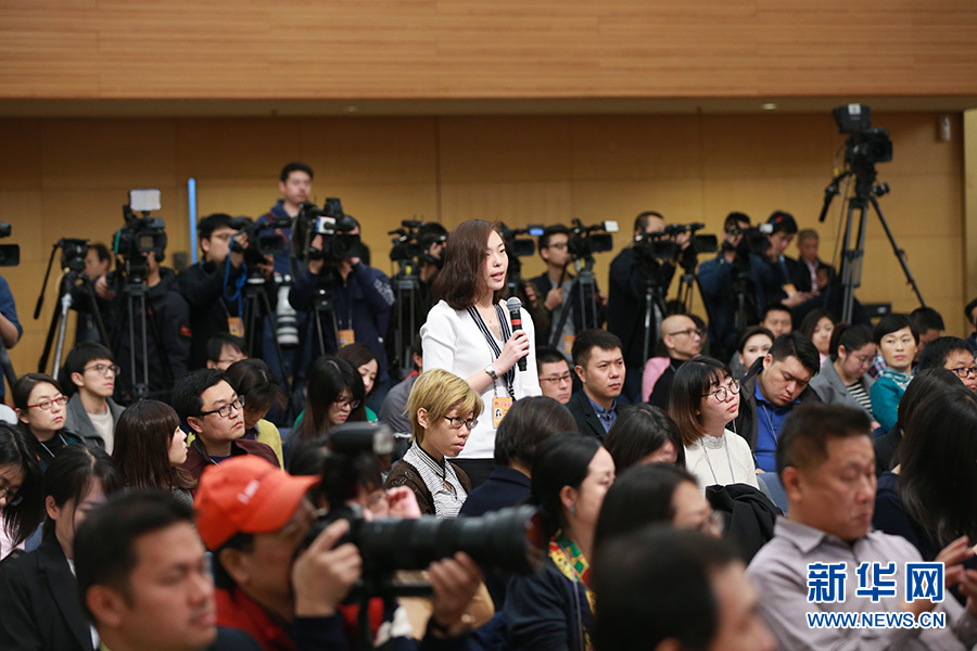 3月11日,十二屆全國人大五次會議新聞中心舉行記者會,邀請工業(yè)和信息化部部長苗圩、副部長辛國斌和總工程師、新聞發(fā)言人張峰就“推進(jìn)實(shí)施‘中國制造2025’”的相關(guān)問題回答中外記者的提問。圖為中國網(wǎng)記者提問。新華網(wǎng)/中國政府網(wǎng) 傅義洲 攝