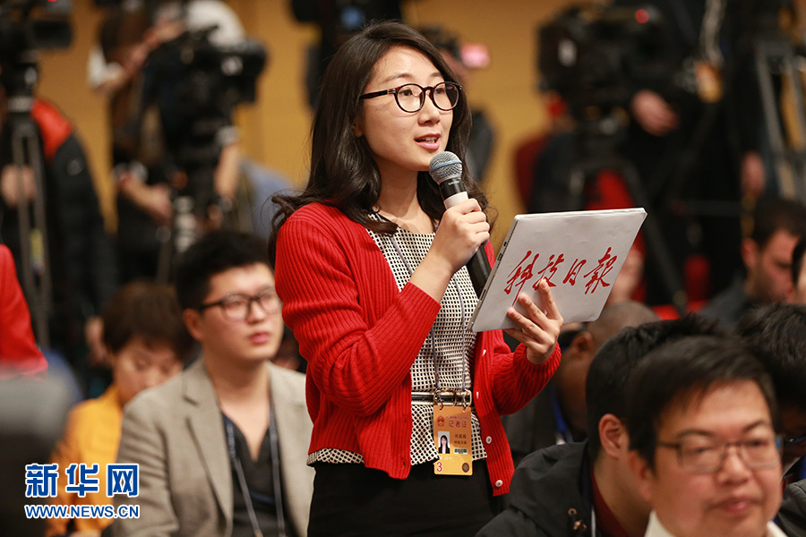 3月11日,十二屆全國(guó)人大五次會(huì)議新聞中心舉行記者會(huì),邀請(qǐng)科技部部長(zhǎng)萬鋼、秘書長(zhǎng)徐建培就“2016年創(chuàng)新驅(qū)動(dòng)發(fā)展戰(zhàn)略實(shí)施進(jìn)展成效和2017年重點(diǎn)工作”的相關(guān)問題回答中外記者的提問。圖為科技日?qǐng)?bào)記者提問。新華網(wǎng)/中國(guó)政府網(wǎng) 王健 攝