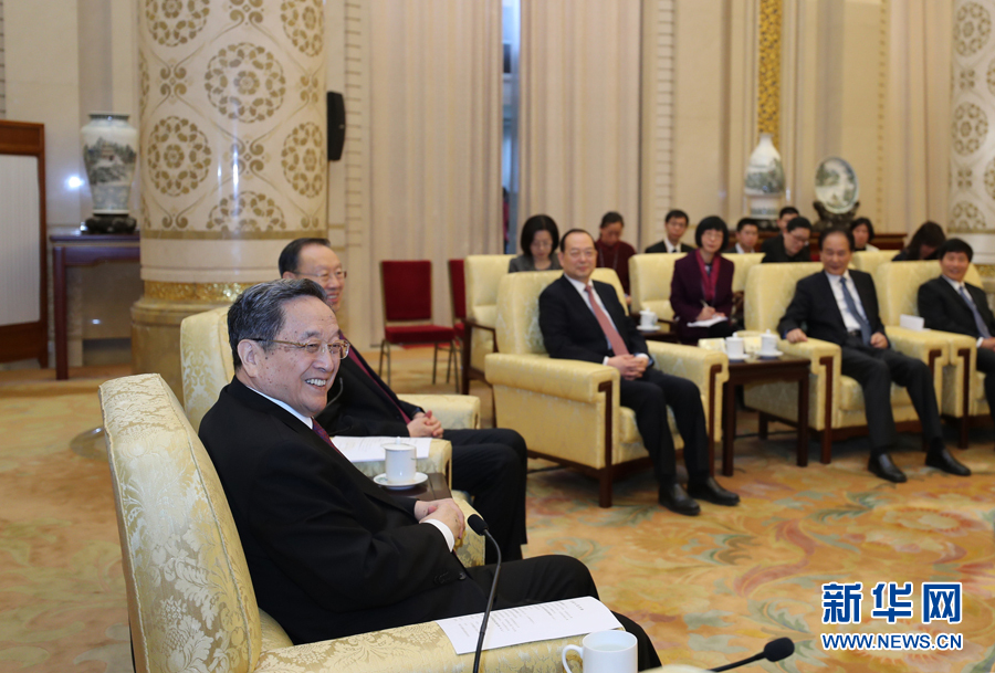 ??? 3月13日,中共中央政治局常委、全國政協(xié)主席俞正聲在北京人民大會堂看望參加全國政協(xié)十二屆五次會議新聞報道工作的中央主要新聞媒體負責(zé)同志和記者代表,向參加大會報道的新聞工作者表示誠摯慰問和衷心感謝。新華社記者 鞠鵬 攝