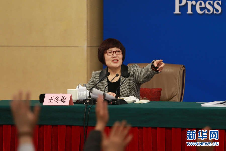 3月14日,十二屆全國人大五次會議新聞中心舉行記者會,邀請國家質(zhì)檢總局局長支樹平、副局長兼國家認(rèn)證認(rèn)可監(jiān)督管理委員會主任孫大偉、國家標(biāo)準(zhǔn)化管理委員會主任田世宏就“質(zhì)量提升”的相關(guān)問題回答中外記者的提問。圖為記者會主持人王冬梅。新華網(wǎng)/中國政府網(wǎng) 傅義洲 攝?