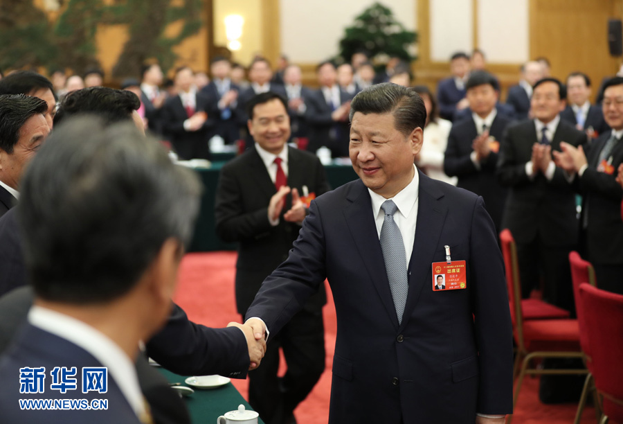 3月10日,中共中央總書記、國家主席、中央軍委主席習近平參加十二屆全國人大五次會議新疆代表團的審議。 新華社記者 李濤 攝