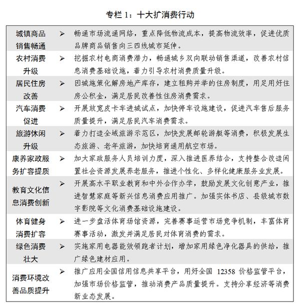專欄1:十大擴(kuò)消費(fèi)行動(dòng) 新華社發(fā)