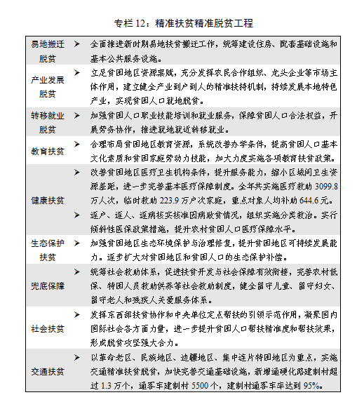 五是補(bǔ)短板力度加大。堅(jiān)持既利當(dāng)前又利長(zhǎng)遠(yuǎn),既重硬設(shè)施又重軟能力,以市場(chǎng)化投融資方式帶動(dòng)銀行貸款等資金投放,在脫貧攻堅(jiān)、災(zāi)后水利恢復(fù)重建、社會(huì)事業(yè)、創(chuàng)新能力、新產(chǎn)業(yè)等關(guān)鍵領(lǐng)域和薄弱環(huán)節(jié),抓好補(bǔ)短板建設(shè)。全年完成1000萬以上農(nóng)村貧困人口脫貧目標(biāo)任務(wù)。