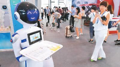 中國-東盟博覽會上的機器人服務員。新華社發(fā)