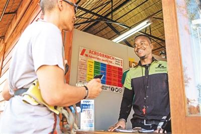 在南非約翰內斯堡,一名游客使用支付寶支付。新華社發(fā)