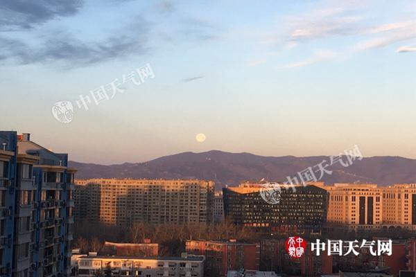 昨天,在強勁北風的掃蕩下,京城“容顏煥發(fā)”,藍天明凈,流云迤邐,早晨上班時段,京城西邊月亮未落,東邊的太陽便已冉冉升起,出現(xiàn)了日月同輝,美不勝收的景色。但氣溫較為低迷,監(jiān)測顯示,南郊觀象臺最高氣溫出現(xiàn)在下午15時26分,僅有0.5℃。