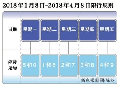昨日,北京市公安交管局發(fā)布本周末以及下周工作日交通提示,進(jìn)入冬季以來,全市路面交通壓力始終保持在較高水平。1月8日起,機(jī)動車尾號限行將進(jìn)行輪換,自1月8日至4月8日,星期一至星期五限行機(jī)動車車牌尾號分別為:5和0、1和6、2和7、3和8、4和9。輪換后,預(yù)計周一早高峰、周五全天交通壓力較大。另外,下周將進(jìn)入“三九天”,駕車出行增多,周五晚間交通壓力將更為突出。