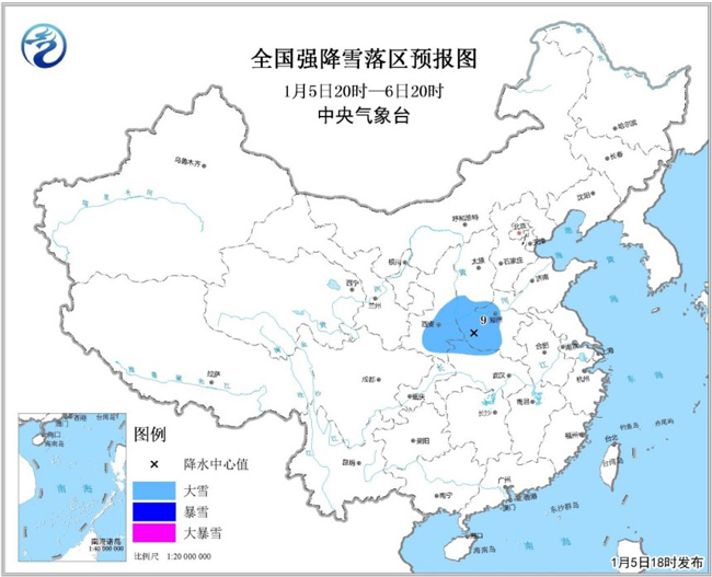 中央氣象臺1月5日18時(shí)再次發(fā)布暴雪藍(lán)色預(yù)警。