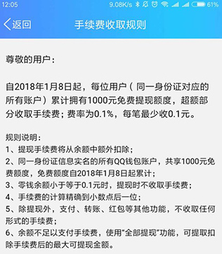 QQ錢包提現(xiàn)收取手續(xù)費