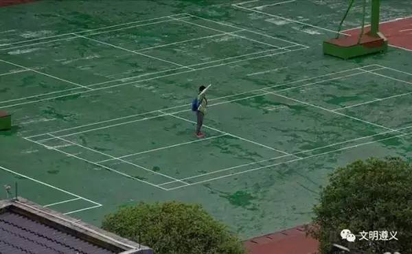 當(dāng)他跑到操場(chǎng)時(shí),突然聽(tīng)到國(guó)歌聲響起,他立刻佇立風(fēng)雨中面向國(guó)旗敬禮。