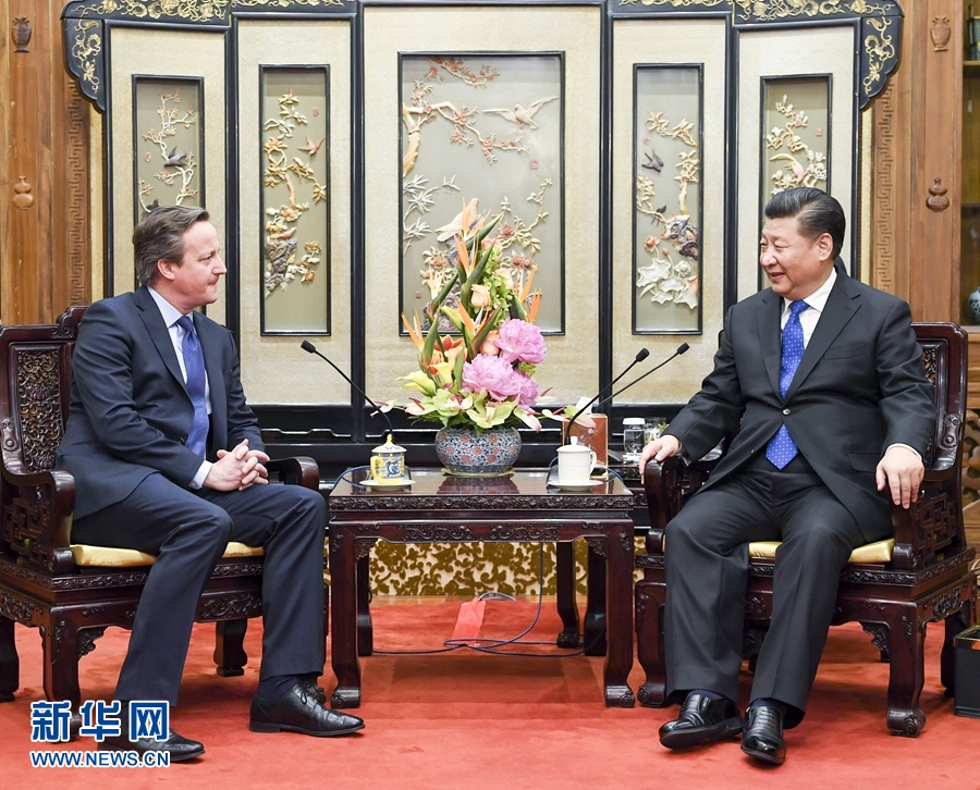 習(xí)近平贊賞卡梅倫擔(dān)任英國(guó)首相期間推動(dòng)中英關(guān)系發(fā)展的遠(yuǎn)見卓識(shí)和作出的努力。