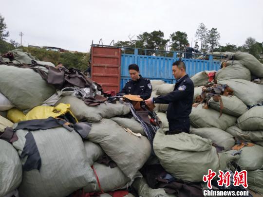 廣西中越邊境查獲“洋垃圾”走私案 查扣廢舊皮革類下角料逾26噸