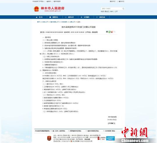 神木旅游局2015年部門(mén)決算公開(kāi)說(shuō)明。網(wǎng)頁(yè)截圖