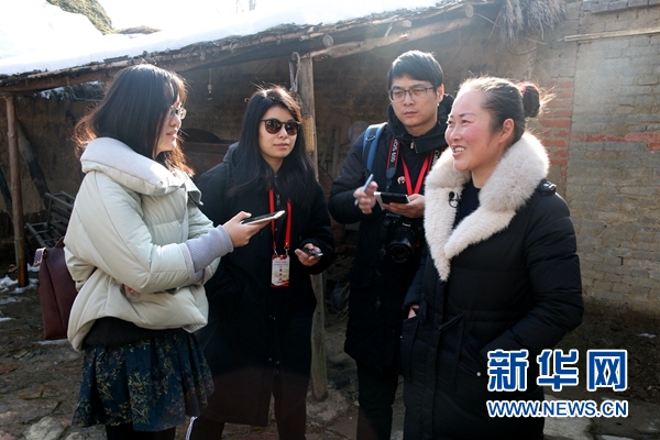 小崗村養(yǎng)豬大戶殷玉榮接受記者采訪。 新華網(wǎng) 趙鳳艷 攝