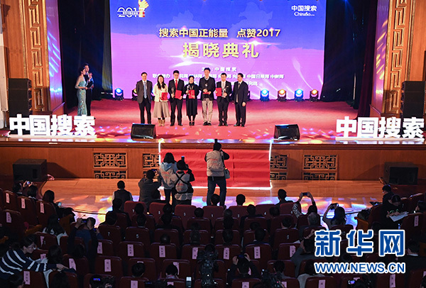 1月19日,“搜索中國正能量點(diǎn)贊2017”活動(dòng)獲獎(jiǎng)企業(yè)代表在頒獎(jiǎng)典禮上領(lǐng)獎(jiǎng)。當(dāng)日,由中國搜索創(chuàng)意策劃,聯(lián)合多家中央重點(diǎn)新聞網(wǎng)站和北京大學(xué)新媒體研究院共同舉辦的“搜索中國正能量點(diǎn)贊2017”大型網(wǎng)絡(luò)宣傳活動(dòng)揭曉典禮在北京舉行。此次活動(dòng)歷時(shí)兩月,征集評選出“精彩中國、創(chuàng)新中國、美麗中國、公益中國、品牌中國”五大系列23個(gè)熱搜、點(diǎn)贊榜單。新華社記者 李賀 攝