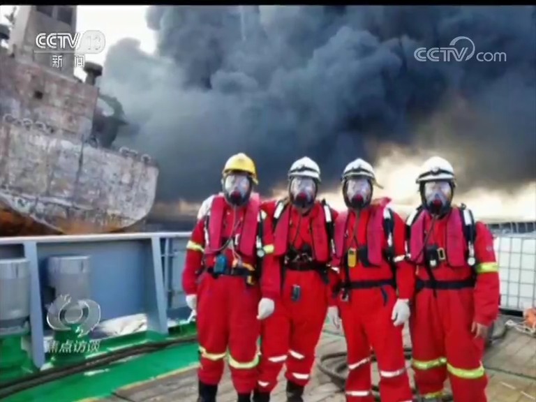 交通運(yùn)輸部東海救助局救助指揮處處長(zhǎng)蔣文輝說:”除了前面當(dāng)時(shí)現(xiàn)場(chǎng)前頭一號(hào)艙跟首間艙的位置,后面整個(gè)都是在燃燒、爆炸以及濃煙覆蓋中,包括我們后面的那個(gè)生活區(qū),整個(gè)在爆炸和燃燒、濃煙中。“