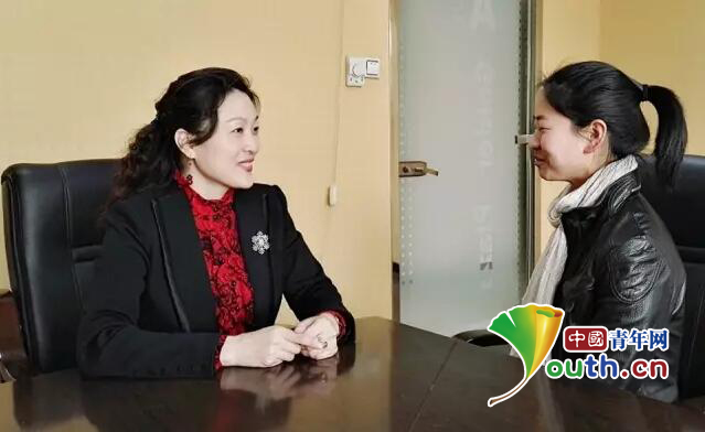 郝萍與當事人交流。本人供圖