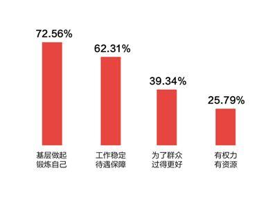 樣本情況:全國(guó)31個(gè)省區(qū)市的605名基層干部、4284名群眾參與了調(diào)查。受訪的基層干部中,從事基層工作不足5年的占27.77%、5到10年的42.64%、11到20年的20.83%、20年以上的8.76%。