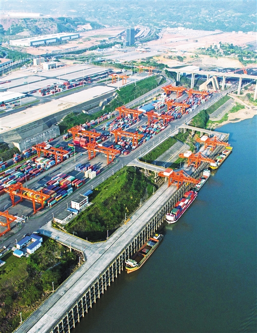 圖為重慶果園港,中歐國際貨運大通道與長江黃金水道實現(xiàn)“無縫連接”。新華社記者 劉潺 攝