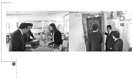 圖① 廬陽(yáng)法院法官到社區(qū)調(diào)查執(zhí)行線索。圖② 廬陽(yáng)法院法官上門查找被執(zhí)行人。