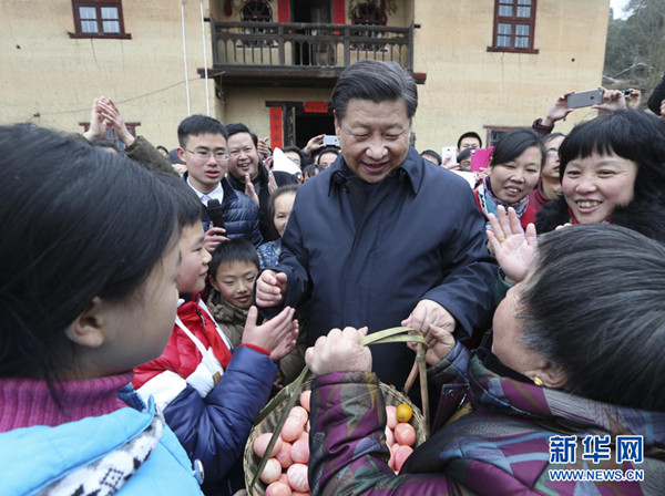 2015年2月13日,習(xí)近平回到曾插隊(duì)7年的陜西延川縣文安驛鎮(zhèn)梁家河村看望村民,自掏腰包給鄉(xiāng)親們送上年貨。他此行還有一個(gè)重要目的是對(duì)革命老區(qū)脫貧致富進(jìn)行調(diào)研,確保老區(qū)人民同全國(guó)人民一道進(jìn)入全面小康社會(huì)。