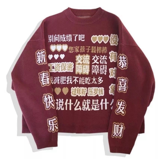 毫無疑問,這件衛(wèi)衣是過年穿給親戚看的,七大姑八大姨關(guān)心的所有問題,標(biāo)準(zhǔn)答案都在身上呢!望周知,請(qǐng)勿繼續(xù)騷擾。