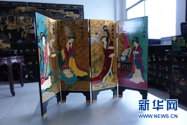 徽漆屏風(fēng)“四大美女圖”。新華網(wǎng) 卓越 攝