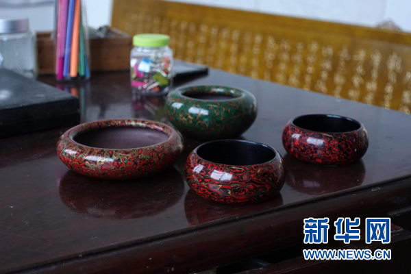徽漆紫砂煙灰缸。新華網(wǎng) 卓越 攝