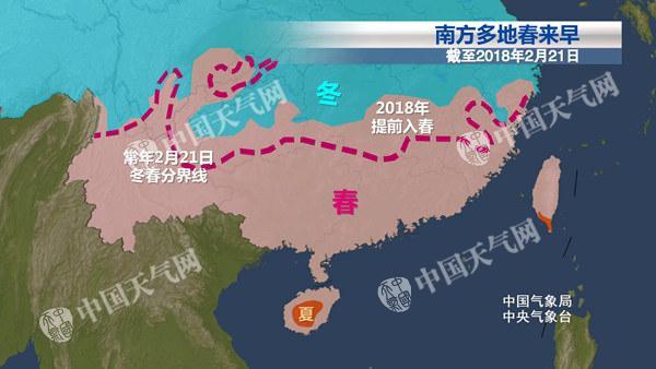 南方氣溫相對平穩(wěn),不過整體仍呈波動上升,目前看,截至2月21日,江南南部、華南北部、四川盆地部分地區(qū)已經(jīng)成功入春,湖南中南部、江西中部都比常年同期提前見到了春姑娘。
