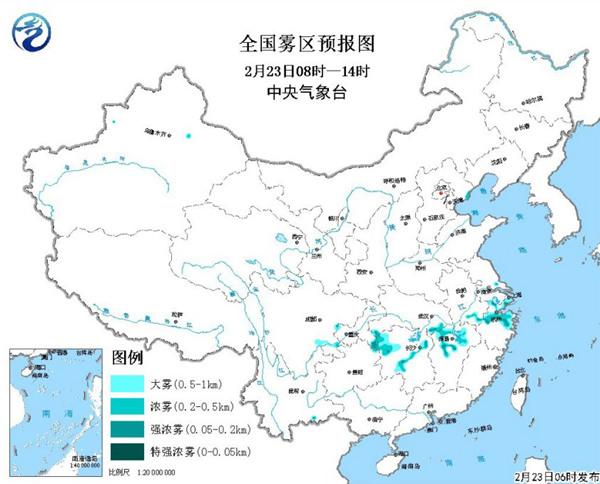 中央氣象臺今天6時繼續(xù)發(fā)布大霧黃色預(yù)警,預(yù)計今天早晨至上午,安徽南部、江蘇南部、浙江北部、江西北部、湖北東南部、湖南西北部和中部、四川盆地南部等地有大霧天氣,其中浙江北部、江西北部、湖南西北部和中部等地的部分地區(qū)有濃霧,局地能見度低于200米。